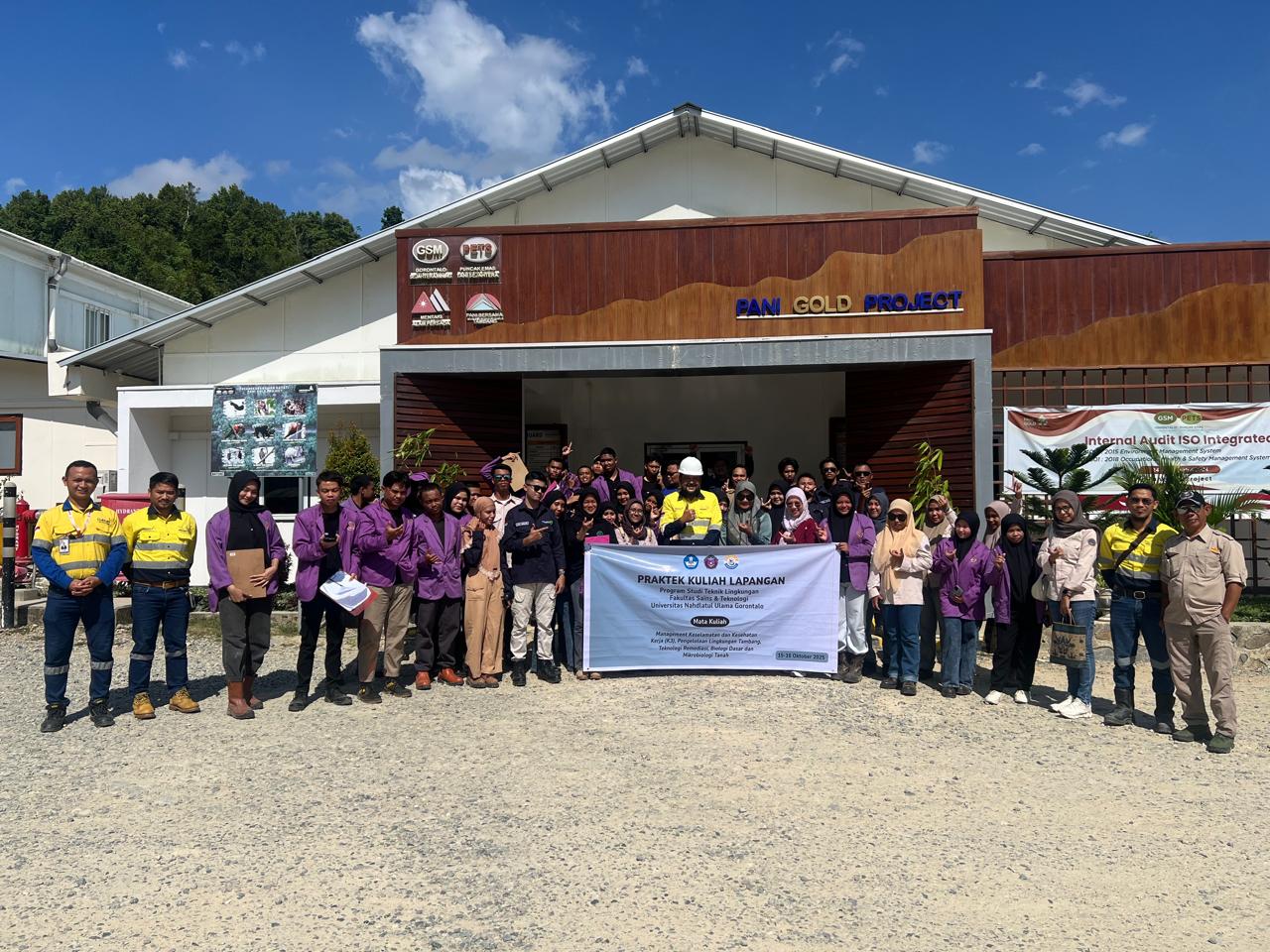 [unugo.ac.id] Kab. Pohuwato – Mahasiswa Program Studi Teknik Lingkungan, Fakultas Sains dan Teknologi Universitas Nahdlatul Ulama Gorontalo (UNUGO), melaksanakan Praktek Kuliah Lapangan (PKL) di PT. Pani Gold Project yang berlokasi di Desa Hulawa, Kecamatan Buntulia, Kabupaten Pohuwato (16 Oktober 2025).