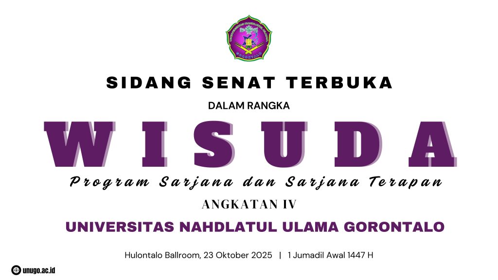 Universitas Nahdlatul Ulama Gorontalo terus berkomitmen memperkuat pelaksanaan Tridharma Perguruan Tinggi, khususnya dalam peningkatan mutu akademik, penelitian ilmiah, dan pengabdian kepada masyarakat. Harapannya agar wisudawan/ti bisa terus bersaing di dunia kerja yang semakian rumit dengan segala tantangan dan perbedaan zaman.