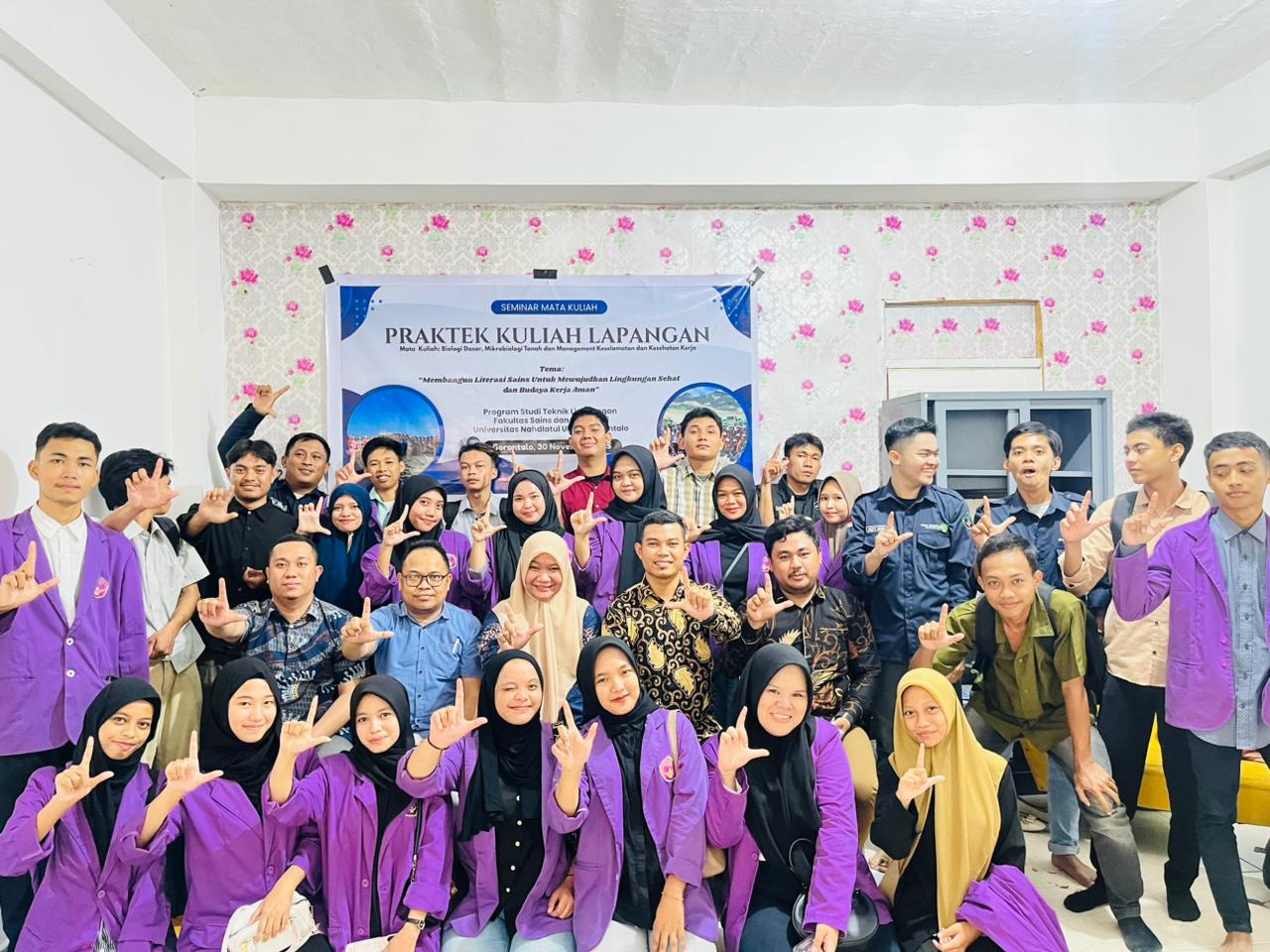 [unugo.ac.id] Kota Gorontalo – Program Studi Teknik Lingkungan Fakultas Sains dan Teknologi Universitas Nahdlatul Ulama Gorontalo menggelar Seminar Matakuliah Praktek Kuliah Lapangan (PKL) pada 30 November 2025. Kegiatan ini merupakan rangkaian akhir dari pelaksanaan PKL untuk tiga matakuliah, yakni Biologi Dasar, Mikrobiologi Tanah, serta Manajemen Keselamatan dan Kesehatan Kerja (K3), dengan mengusung tema “Membangun Literasi Sains untuk Mewujudkan Lingkungan Sehat dan Budaya Kerja Aman”.